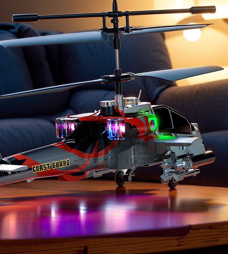 This remote-controlled combat helicopter is inspired by real military helicopters and features intricate details and high-quality craftsmanship. Powered by twin coreless motors, it provides powerful propulsion and responsive maneuverability.