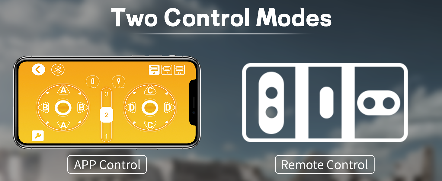- 🎛️ Dual Control Modes: Supports Bluetooth handheld remote control & mobile APP control.